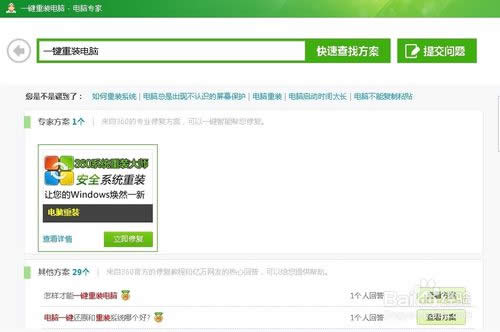 系统软件是指控制和协调计算机及外部设备,支持应用软件开发和运行的系统,是无需用户干预的各种程序的集合,主要功能是调度,监控和维护计算机系统;负责管理计算机系统中各种独立的硬件,使得它们可以协调工作。系统软件使得计算机使用者和其他软件将计算机当作一个整体而不需要顾及到底层每个硬件是如何工作的。 目前的系统一键重装系统是层出不穷,小猫小狗各种各样的都有,那么系统重装软件究竟如何使用呢?接下来我们来看看这篇系统一键重装系统教程 第一步:搜索一键重装系统 在这里输入“一键重装电脑”它将会帮你搜索的关键词的相关资料 ![]() 系统一键重装系统教程(图1) 第二步:立刻修复 查找到“一键重装电脑” 下面是搜索岛的相关资料---我们在这里点下面的“立即修复” 按钮 ![]() 系统一键重装系统教程(图2) 第三步:立刻重装 然后弹出来的对话框,我们在点“立即重装电脑系统” ![]() 系统一键重装系统教程(图3) 教程讲解到这里基本已经快要结束了,小编带来的这个系统一键重装系统教程是否很实用呢,是否能解决你的问题了呢。 系统软件一般是在计算机系统购买时随机携带的,也可以根据需要另行安装。 |
