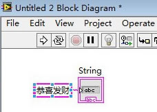 6、现在我们在前面板中点击连续运行按钮,可以看到前面板中的字符串控件中显示出“恭喜发财”四个字