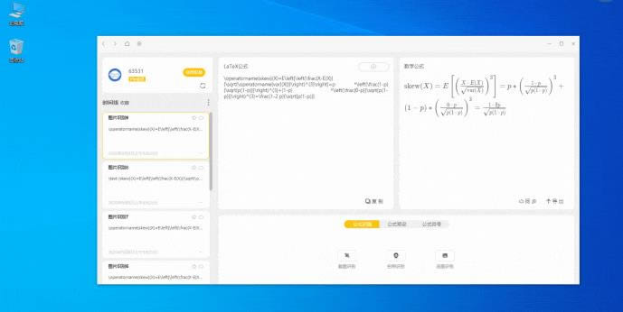 | 极度公式是一款数学Latex公式软件,Android、windows、Mac多平台,支持公式字符编辑与录入、公式模板选择,对于重要公式支持云备份,也可以手机端拍照桌面端编辑等实用功能,化繁为简,助您更高效率办公! ![]() 功能介绍从 PDF 到 LaTeX 文档,只需两个步骤: 1、使用截图快捷键:Ctrl+Alt+Q (Windows )/ Command+Optin+Q(macOS) ,截取 PDF 文件上的公式。 ![]() 2、复制粘贴 MathMl 到任何兼容编辑器中即可。 ![]() 识别功能 可非常准确地简单转换复杂的纸张中的数学公式图像。 它还可以轻松识别转换手写的数据公式图像。 支持公式图像到 LaTeX,公式图像到 Microsoft Word,公式图像到 TSV(粘贴到 Excel 和 Google 工作表)等。 ![]() 电脑学习软件,可以很好的帮助提高孩子的学习成绩,老师们也可以来下载教育教学软件,辅助教学,提高教学质量。 |