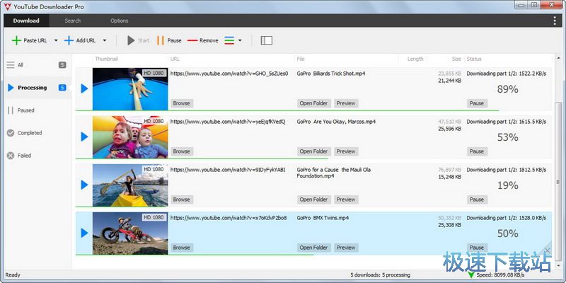 一次下载多个视频 YouTube Downloader Pro支持同时下载,允许您同时下载多个视频。 暂停并继续下载 今晚你可以暂停下载,明天早上恢复下载。