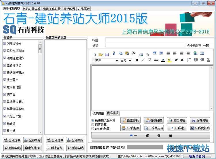 石青建站养站大师是一款独特的SEO软件,他通过把个人博客模拟为CMS信息发布网站,从而达到吸引搜索引擎的目的,带来大量流量为建站者带来广告收益。建站者往往都希望能够快速而简便的建站,并在少数的时间内有较高的访问量。从而