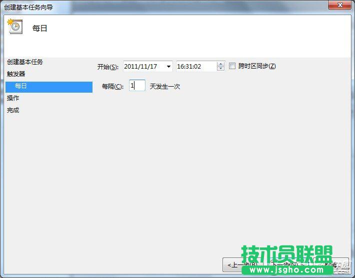 点击“下一步”; 设置触发器触发时间(如:“每天”);