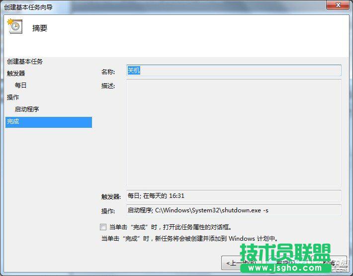 第二步:设置任务的触发时间、脚本和参数 在弹出的“创建基本任务向导”中输入基本任务的名称(如:“关机”);