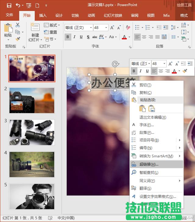 办公软件是指可以进行文字处理、表格制作、幻灯片制作、图形图像处理、简单数据库的处理等方面工作的软件。目前办公软件朝着操作简单化,功能细化等方向发展。办公软件的应用范围很广,大到社会统计,小到会议记录,数字化的办公,离不开办公软件的鼎力协助。另外,政府用的电子政务,税务用的税务系统,企业用的协同办公软件,这些都属于办公软件。 教你如何玩转PPT超链 首先是在PPT中加入一个链接。在PPT合适的位置插入文本框输入文字,然后选中这些文字,右击,选择“超链接”。这里插一句,并非只有文字能加超链,右击图片,也可以加超链哦