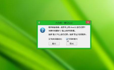 u盘载图7 弹出这个提示框,勾选“完成后重启”和“引导修复”,点击是开始执行还原过程