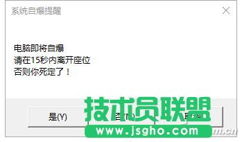 Windows 10是美国微软公司研发的跨平台及设备应用的操作系统。是微软发布的最后一个独立Windows版本。Windows 10共有7个发行版本,分别面向不同用户和设备。截止至2018年3月7日,Windows 10正式版已更新至秋季创意者10.0.16299.309版本,预览版已更新至春季创意者10.0.17120版本 先来第一段弹窗代码: msgbox"内容A"+chr(13)+"内容B"+chr(13)+"内容C",1,"标题" 将它们复制到文本中,将后缀改成“.vbs”就可以双击执行了。 其中“msgbox”代表Windows系统的弹窗警告,内容A、内容B、内容C是大家想在弹窗上显示的文字,而“标题”就是弹窗左上角类似系统警告一类的内容。另外,在“标题”前面的数字“1”代表调用系统按钮的样式,也可以换成2、3、4,共4种按钮样式供大家选择,写好内容的代码应该就是 msgbox"电脑即将自爆"+chr(13)+"请在15秒内离开座位"+chr(13)+"否则你死定了!",1,"系统自爆提醒"