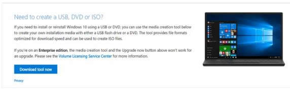 win10载图1 可以看到网页下方有ISO的字眼,点击DOWLAND TOOL NOW,就可进入制作win10ISO镜像文件的路程了。