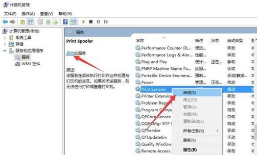 打印机载图6 从打开的“系统服务“列表中,找到”Print Spooler“服务项,如果此服务没有正常开启,则直接右击选择”开启“项即可。
