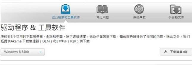 华硕载图4 按页面提示在下拉列表中选择具体产品型号,选择完毕后,点击右侧的“驱动程序和工具软件”直达驱动下载页面