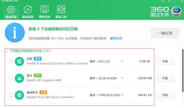 第五步:切记一定要下载360驱动大师网卡版,一般的版本无法安装网卡,使用驱动精灵等其他驱动软件也是可以的,修复网卡确保能上网后还能检测系统缺失的驱动。
