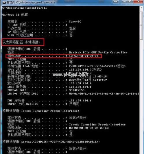 Windows 7,中文名称视窗7,是由微软公司(Microsoft)开发的操作系统,内核版本号为Windows NT 6.1。Windows 7可供家庭及商业工作环境:笔记本电脑 、平板电脑 、多媒体中心等使用。和同为NT6成员的Windows Vista一脉相承,Windows 7继承了包括Aero风格等多项功能,并且在此基础上增添了些许功能。 虽然说我们大家经常都在使用着电脑,但是有一些电脑知识我们还是不懂,比如最常见的就是有用户会问怎么查看MAC地址?其实吧解决这个问题的方法其实很简单,下面小编就来给大家演示一下子查询MAC地址的方法。 小伙伴你们知道吗?MAC地址就像是电脑的身份证号码一样,我们可以通过mac地址来进行监控某一台电脑的喔,虽然ip地址会变,但mac地址却是永远不会变哟,那么小伙伴你们知道怎么查看Mac地址吗?要是不知道的话,那么就随小编一块去看看进行查询电脑Mac地址的方法吧。 用命令查看Mac地址: 1,输入win+R,打开运行对话框,或者fn+R。输入CMD,点击确定。 ![]() 电脑载图1 2,输入命令 ipconfig/all,按下回车。 ![]() 电脑载图2 3,找到本地连接对应的物理地址即MAC地址。 ![]() mac地址载图3 直接查看MAC地址: 1,点击右下角,小电脑再点击打开网络和共享中心。 ![]() 电脑载图4 2,点击网络共享中心中的本地连接。 ![]() mac地址载图5 3,点击本地连接的详细信息。 ![]() mac地址载图6 4,找到对应的物理地址即MAC地址。 ![]() 电脑载图7 Windows 7简化了许多设计,如快速最大化,窗口半屏显示,跳转列表(Jump List),系统故障快速修复等。Windows 7将会让搜索和使用信息更加简单,包括本地、网络和互联网搜索功能,直观的用户体验将更加高级,还会整合自动化应用程序提交和交叉程序数据透明性。 |