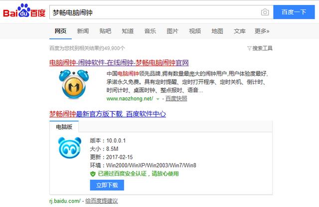 Windows 7,中文名称视窗7,是由微软公司(Microsoft)开发的操作系统,内核版本号为Windows NT 6.1。Windows 7可供家庭及商业工作环境:笔记本电脑 、平板电脑 、多媒体中心等使用。和同为NT6成员的Windows Vista一脉相承,Windows 7继承了包括Aero风格等多项功能,并且在此基础上增添了些许功能。 梦畅电脑闹钟,拥有定时提醒,生日提醒,定时关机,定时启动软件,计时倒计时,校对时间以及报时等等7大免费功能,安装内存小,不占用电脑过多的空间,操作简单,点击新建任务,输入所需的内容即可自动生成,接下来我们一起看看梦畅电脑闹钟的使用教程吧。 在工作、生活中,使用windows时难免会想要拥有电脑闹钟的功能,但我们翻了菜单一遍也没能看到梦畅闹钟的影子,最后发现是添加任务才有类闹钟的形式,非常不方便,那么,有没有一种简单易用的方法呢?其实我们只需要下载一个梦畅电脑闹钟软件就可以了。 梦畅电脑闹钟介绍 首先我们搜索【梦畅电脑闹钟】,可以进入官网下载,也可以直接在百度提供的下载链接下载。