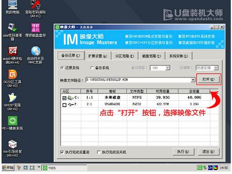 惠普电脑图解4 进入“映象大师”后,通过“打开”按钮选择我们拷贝进U盘启动盘的ISO文件。