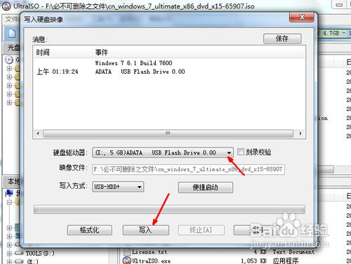 Windows 7,中文名称视窗7,是由微软公司(Microsoft)开发的操作系统,内核版本号为Windows NT 6.1。Windows 7可供家庭及商业工作环境:笔记本电脑 、平板电脑 、多媒体中心等使用。和同为NT6成员的Windows Vista一脉相承,Windows 7继承了包括Aero风格等多项功能,并且在此基础上增添了些许功能。 把系统装进U盘,以后就可以用U盘来为电脑装系统了,那么如何win7系统安装在u盘了,相信大多数人都不知道怎么把win7装进u盘里面,不要紧!你们的大哥在这里!分分钟帮你们把win7装进u盘。下面就是win7之家小编给你们整理出来的win7系统安装在u盘方法。 我来说说把windows7系统安装版系统装进U盘用来为自己的电脑或者别人的电脑装系统的方法 ,你掌握了这个方法,也可以成为一位菜鸟眼中的“高手”了。 首先要下载一个叫ultraiso的软件。可以在百度中搜索此软件下载。下载后安装,安装后打开软件,如图所示。 ![]() 点击左上角的文件选项,在弹出的菜单中,点击打开选项,打开一个你要装进U盘的操作系统。 ![]() 在资源管理器中找到你之前下载好的操作系统镜像文件。如图所示,点击一下打开就可以了。 ![]() 现在,操作系统镜像文件内的文件全部被加载到了软件中,如图,你也可以在这里面自定义一些文件或者设置,但不建议新手这么做。 ![]() 接下来,我们要进入操作的实质阶段了,点击上方菜单栏中的启动选项,在弹出的菜单中点击写入硬盘映像这个选项。 ![]() 在写入硬盘映像的页面中,选择好你所要制作 的U盘,如图在硬盘驱动器选项里面。然后你也可以选择一下写入的方式,当然软件默认的就可以了,如果你的主板是一些老的主板,可以选择其他的选项。最后点击写入按钮开始往U盘写入文件。当文件写入完成,一个可以启动的可以装系统的U盘就做好了。 ![]() 关于你们需要的win7系统安装在u盘的方法,win7之家小编已经给你们介绍完毕了,现在是不是都学会了win7装进u盘里面,所以想u盘安装电脑系统的各位大哥大姐,就可以参考小编的这个方法进行了,这次教程讲到这里就结束了哦,祝大家生活愉快! Windows 7简化了许多设计,如快速最大化,窗口半屏显示,跳转列表(Jump List),系统故障快速修复等。Windows 7将会让搜索和使用信息更加简单,包括本地、网络和互联网搜索功能,直观的用户体验将更加高级,还会整合自动化应用程序提交和交叉程序数据透明性。 |
