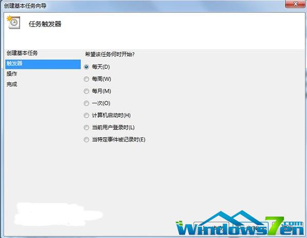 Windows 7,中文名称视窗7,是由微软公司(Microsoft)开发的操作系统,内核版本号为Windows NT 6.1。Windows 7可供家庭及商业工作环境:笔记本电脑 、平板电脑 、多媒体中心等使用。和同为NT6成员的Windows Vista一脉相承,Windows 7继承了包括Aero风格等多项功能,并且在此基础上增添了些许功能。 关于w7系统怎么自动关机开机设置问题?其实有不少的人说电脑白天要用来工作,如果用来下载资料,一边工作一边下载,网速会卡,这样会影响工作.那应该怎么办?别急,下面就让小编以w7系统怎么自动关机为例给大家介绍一下关于w7系统怎么自动关机开机方法吧. 1、按快捷键“Win+R”,弹出运行界面,然后输入“shutdown -s -t 3600”。这里的“3600”指的是一个小时的秒数,因为计算机系统记忆关机时间是以秒计算的。如图1所示 ![]() 2、设置好后,会弹出一个短暂的黑色的命令框,继而消失。之后你就会发现桌面右下角会出现提示框,里面写着“您将要被注销,windows将在60分钟内关闭”。(小编以1小时为例)如图2所示 ![]() 二、在计划任务中添加 既然命令操作会添加成一个计划任务,那我们是不是不用命令也可以添加呢?当然可以,下面就来看看具体方法。 1、在“计算机”上单击右键,点击“管理”。然后左键单击“系统工具”栏下的“任务计划程序”,最后在最右侧的“操作”栏中,点击“创建基本任务”。 ![]() 2、 在“名称”除填入需要设置的名称,“描述”处可以选择填入描述语言,点击“下一步”。 ![]() 3、希望任务何时开始:只是使用一次,点选“一次”,然后点击“下一步”即可。这里我们选择了默认的“每天”。 ![]() 4、依旧是设置晚上11点关机,这里我们修改第二个框中的内容为23:00:00即可,数值可以点选也可以输入。我们还可以在第三个框中更改时间间隔。设置完成后点击“下一步”。 ![]() 5、这一步使用默认的“启动程序”即可,继续点击“下一步”。 ![]() 6、进入“启动程序”项,如果系统在C盘,那么在“程序或脚本”框内输入“C:\Windows\system32\shutdown.exe”(注意根据个人实际情况修改盘符);然后在“参数”处填入“-s -t 0”(即立即关机),然后点击“下一步”。 ![]() 7、看一下大致的内容,没问题的话点击“完成”,我们的系统就会在设定的时间完成关机。 ![]() 好了,以上就是关于w7系统怎么自动关机的解决方法, 相信大家通过上面的描述有一定了解吧,如果想了解更多,敬请关注我们哦。 Windows 7简化了许多设计,如快速最大化,窗口半屏显示,跳转列表(Jump List),系统故障快速修复等。Windows 7将会让搜索和使用信息更加简单,包括本地、网络和互联网搜索功能,直观的用户体验将更加高级,还会整合自动化应用程序提交和交叉程序数据透明性。 |
