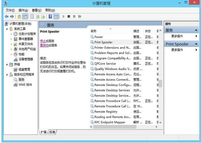 程序没有运行载图2 在服务列表中找到print spooler,并点击启动此服务