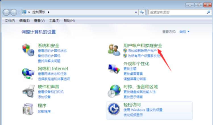 电脑锁定载图1 2,左键单击“控制面板”,进入如下界面,点击“用户账户和家庭安全”