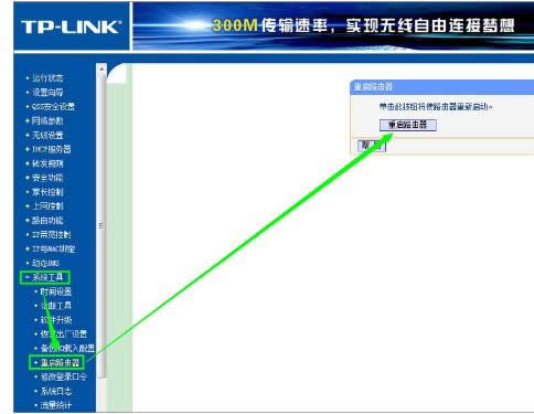 修改密码载图6 这时新的密码应该已经生效了。如果没有生效的话,点击左侧的【系统工具】→【重启路由器】,然后在右侧点击【重启路由器】