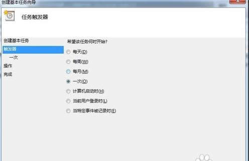 win7载图10 4、第二步,选择一次(可以根据个人需要,选择不同时间段)。下一步填入任务时间。