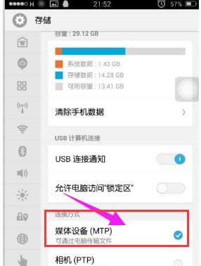 显示充电载图3 打开手机设置,关于手机,存储,将可移动磁盘模式或者MTP模式打开