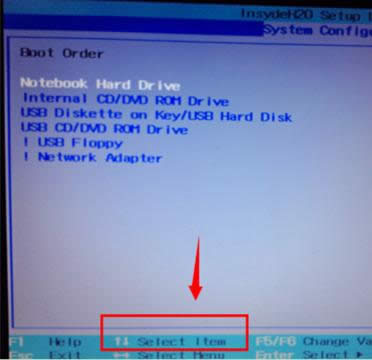 设置光盘启动载图3 进入系统启动设备选项设置,排在前面的就是首选启动设备啦。如果要调整可以通过下面提示,用键盘上下箭头来调整