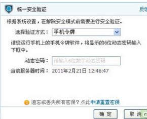 安全模式载图5 点击手机令牌,弹出手机令牌验证框