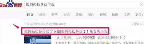 第一步:下载轻松备份软件。 百度搜索输入:轻松备份下载,点击:傲梅轻松备份官方下载...;(下载步骤略)