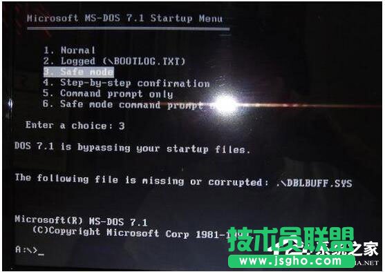 方法二、 开机,在出现Windows系统界面之前,按下键盘上的“F8”键,即可进入Windows“功能菜单”界面。然后利用方向键选择“命令行模式”即可进入DOS界面。