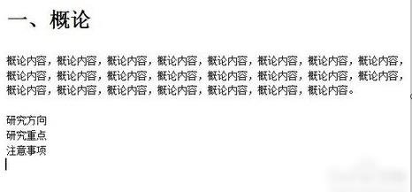 生成目录电脑图解3 然后在后面输概论内容,此处概论为一级标题,但是如果里面有很多内容,那就需要二级标题,但是添加方式是一样的。小编我写的是研究方向、研究重点、注意事项。输入完成后,选中三个要点,点击样式中的“标题2”完成后如下图3所示,二级标题的话就如图4所示。