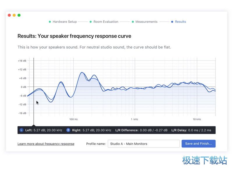 查看您的实际频率响应在校正前后查看房间/耳机声音,分别查看左右声道响应。